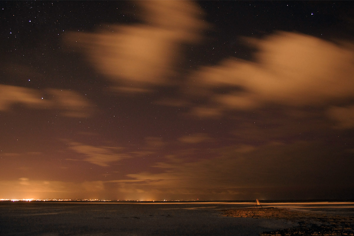 - looking due south, the Southern Cross is on its side upper left, Achernar is upper right. Glows still visible.