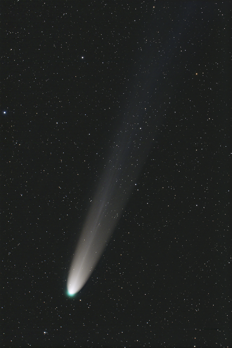 - 2021 December 29; amazing to compare the comet's appearance today with yesterday's. A couple of fine streamers in the tail, but much less seems to be going on