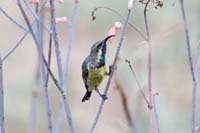 | Levaillant's Cuckoo (39cm) | Violet-backed Starling (17cm) | Black-faced Waxbill (f) (12cm) | Red-backed Shrike (18cm) | Dideric Cuckoo (19cm) | Kurrichane Thrush (21cm) | Rufous-naped Lark (17cm) |