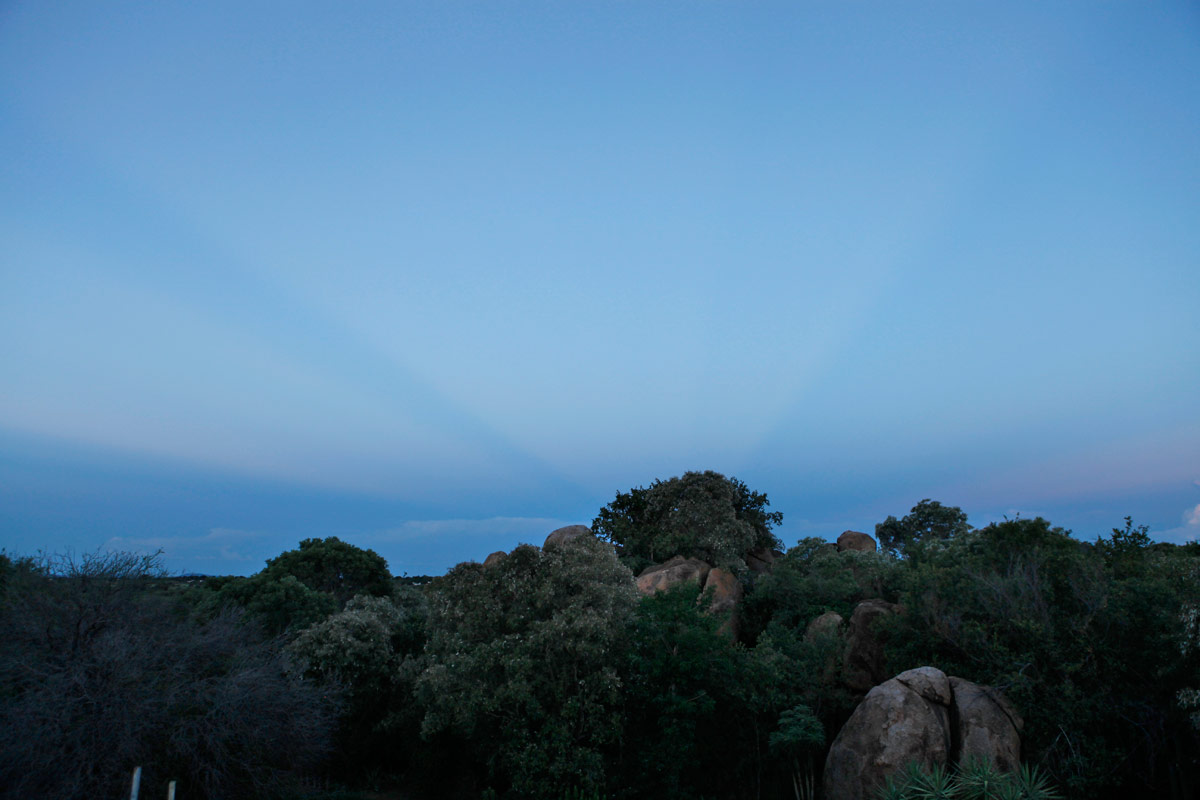 Anti-crepuscular rays converging directly opposite the setting Sun