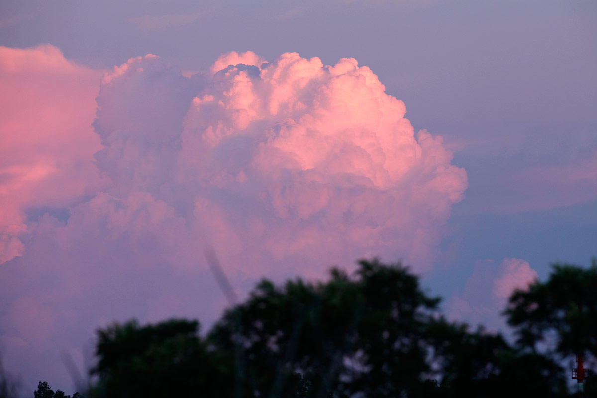A rising cumulus cloud illuminated by the colours of the setting Sun. A powerful lightning storm occurred later that night.