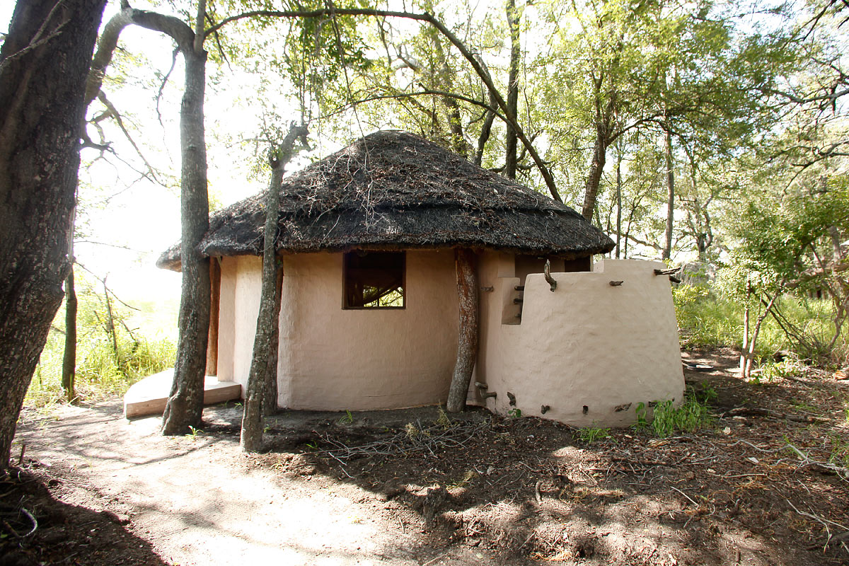 The accommodation: thatched roof and novel outdoor shower
