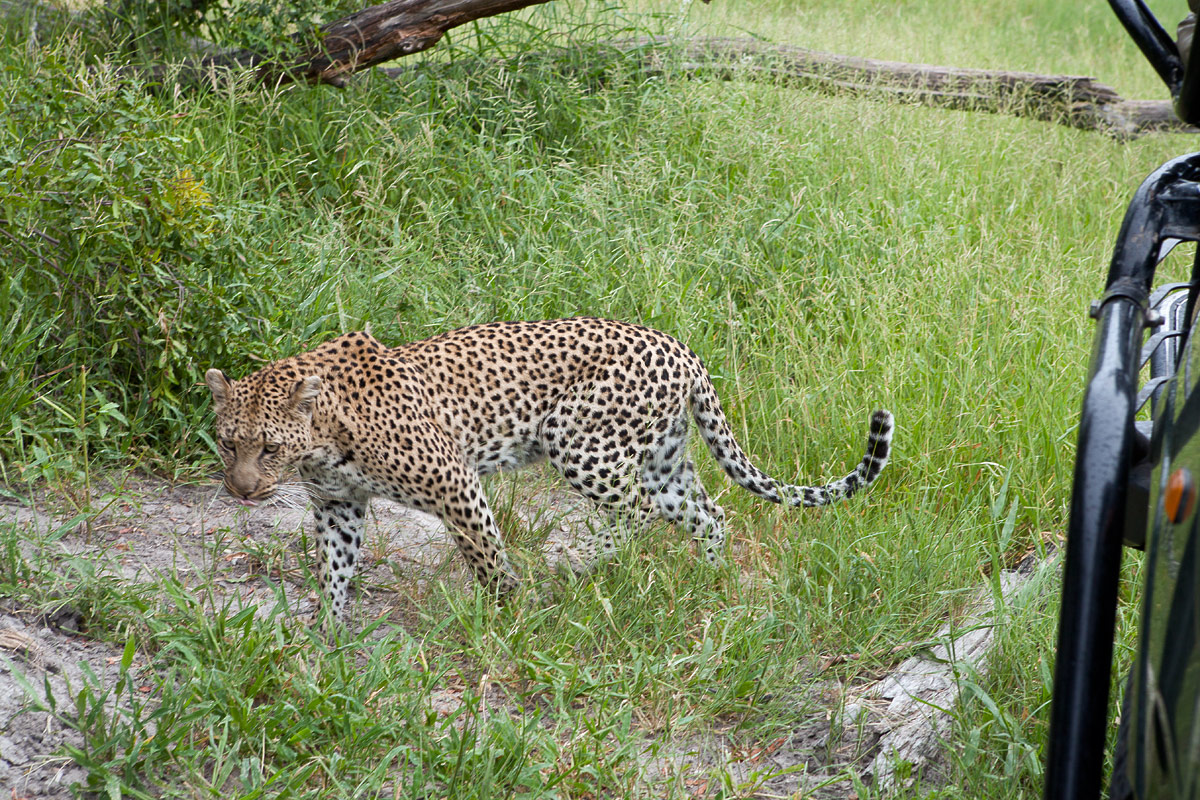 A female leopard walking very close to our jeep. I was tempted to reach out and touch it, but I thought better of it!