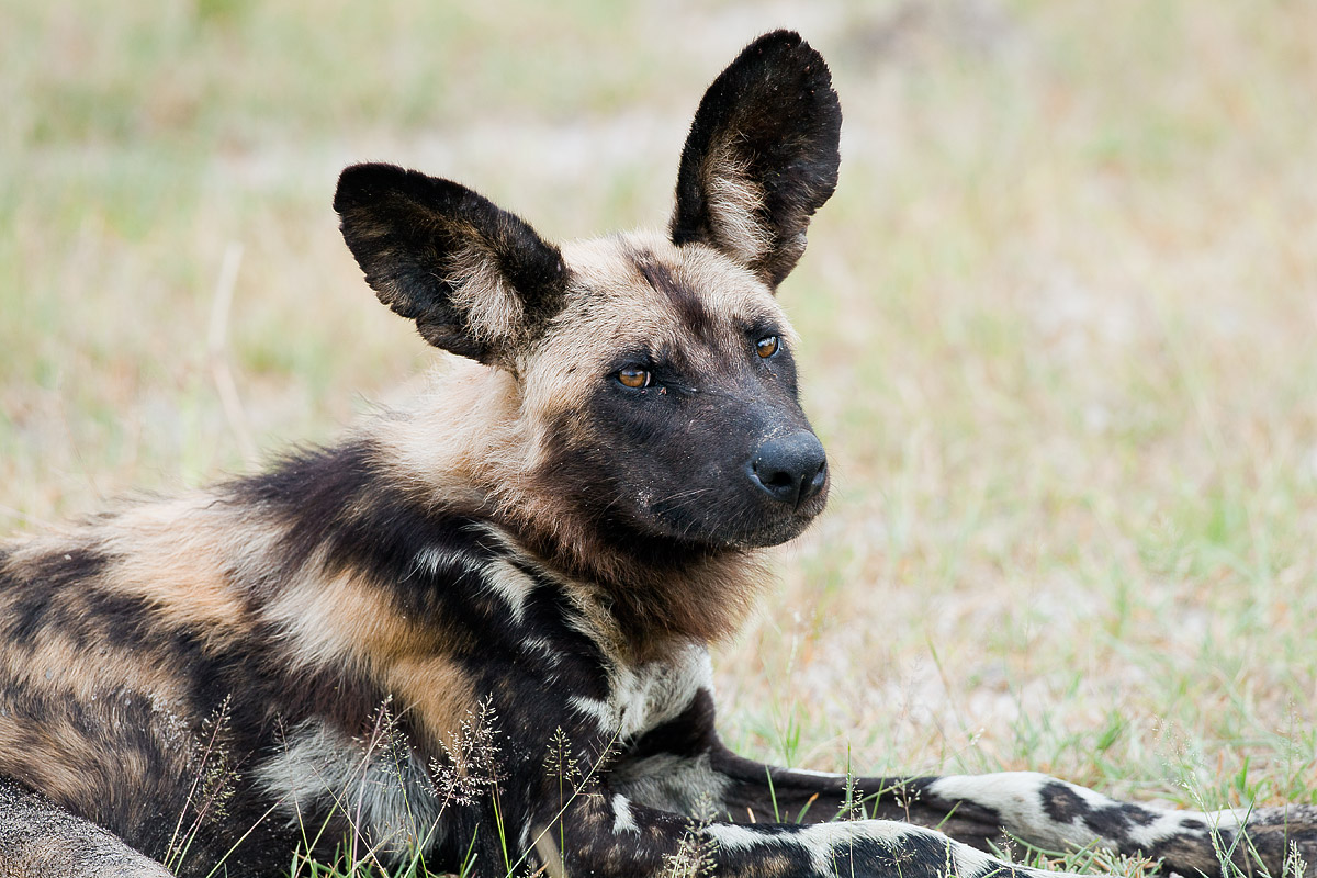 African wild dog. Endangered, but numbers are being sustained in Moremi