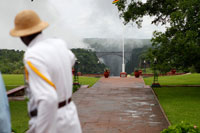 Zimbabwe A flight from Gaborone to Kasane and a half hour's drive to the Zimbabwe border for two days at Victoria Falls. It was wet season, the falls were building up flow and starting to live up to their indigenous name Mosi-oa-Tunya, "the smoke that thunders". Warning: be prepared for a drenching! It was an enjoyable stay - accommodation, food, sights, all good - the only blemish being an attempted dawn break-in by baboons through my partly open first floor window. I did wonder, beforehand, why the windows had a warning to keep closed when not in the room! Now I know. Zimbabwe birds were no problem I'm pleased to say. |