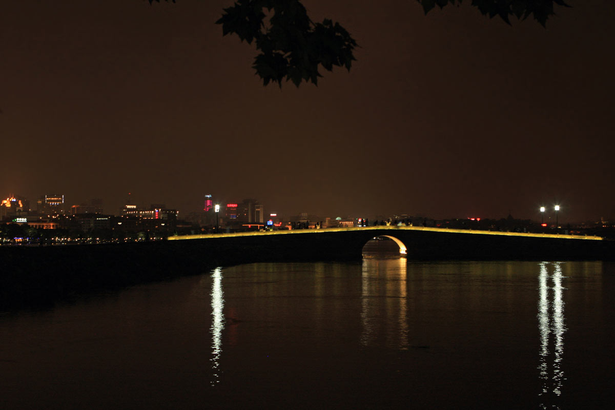 | A cityscape and busy intersection at night. Here's another night scene (West Lake at night). |