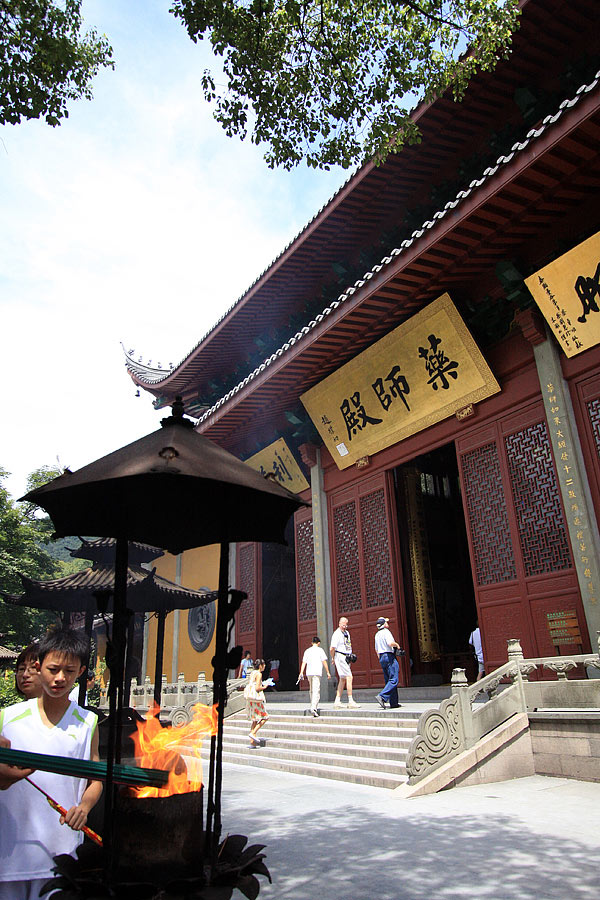 Hangzhou Hangzhou is renowned for its historic relics and natural beauty and is ranked in the ten most scenic cities in China. Its location on the West Lake and backdrop of mountains certainly adds charm and it is a popular honeymoon destination for newlyweds. Although it has been through many recent urban developments it still retains its historical and cultural heritage. One of the most prosperous cities in China, its port was the focus over the centuries of a vigorous local and international economy in longjing (green tea) and many other commodities directly linking traders as far north as Beijing to Hangzhou via the Grand Canal as far back as 609AD. My reason for being in Hangzhou was observation of the total solar eclipse on the 22nd July 2009. Here's the report.