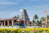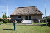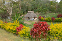 The Chief's house at Viseisei - landing place of the founders of Fiji - with one of the Village Guides | A brightly coloured temple in Nadi | |