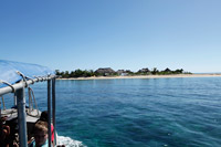 One of the many island resorts passed during the day cruise | The uninhabited island destination of the cruise. Note the coral reefs underwater | |