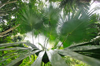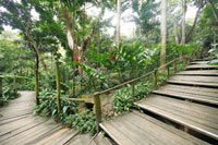The board walk snaking its way up the mountain | Playing with sunlight streaming through palm leaves | |