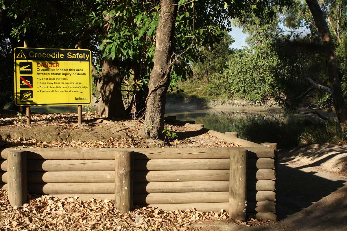Large crocodiles are abundant and very dangerous. All rivers and waterholes display signs warning of the dangers - the only guaranteed crocodile-free body of water in the Park is the Jabiru swimming pool!