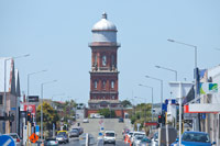 A most famous landmark in Invercargill - the Watertower. Here viewed looking up Leet Street. |