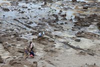 | Curio Bay and the petrified forest that is revealed at low tide. A tree in close-up. | |
