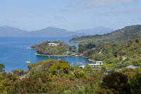 | One of the many fabulous views of the Stewart Island coastline. This one over Golden Bay the departure point for Ulva Island | |