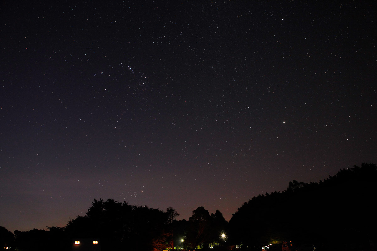 Orion is left of middle and Jupiter is middle right, in Gemini