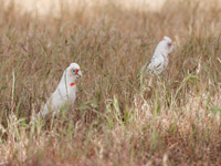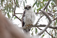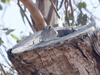 Newstead Bird Camp, Melbourne Cup Weekend 2014 The camp site was the Newstead Recreation Reserve next to the racecourse, just across the Loddon River from Newstead itself. It was an excellent site with very good amenities, such as town's water, flush toilets and hot showers (a luxury compared with the facilities of other bird camps). It was held over a week with generally warm, sunny days and a few cold nights. Fresh air was in abundance as the winds became quite blustery at times. The area is famous for gold discoveries and mining - quartz is everywhere and many, many millions of troy ounces of gold were hard-won during the 1850's to early 1900's. I think we all had lots of fun trying to add to our birdlists, though it may have been difficult at times. Near the entrance was this unusual carving made from the stump of a lopped tree and the substantial area was occupied by many happy campers in caravans and tents. The train used to run through town - now the station is abandoned, and this garage? has probably seen better days. Nevertheless this church was well-maintained as was the butter cooperative, the shoe store and the mechanic's institute. There were a couple of clear moonlit nights giving opportunity to do some simple night sky photography, such as this view looking south and also this lovely lunar halo. The final bird species total was 143, whilst my count was 107, including two "lifers" - owlet nightjar and spotted harrier. Highlight for me was the pair of powerful owl raising two healthy and well fed youngsters that were resident in a shady gum on the banks of the Loddon a short drive from camp. |