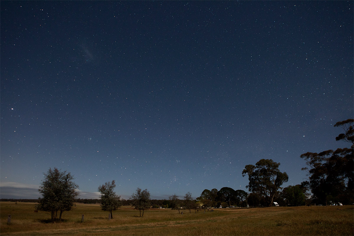 A view over the Campsite looking due South illuminated by the first-quarter moon