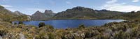 A panoramic view of Cradle Mountain and Dove Lake shoreline |