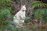 Accommodation on South Bruny Island | An albino wallaby. A resident of the Sanctuary on Sth Bruny | |