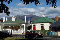 A cottage row in Hobart | Historic properties on Arthur's Circus overlooked by Mt Wellington, Hobart | |