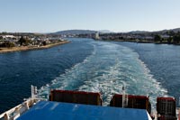 | Goodbye Melbourne, departing on the "Spirit of Tasmania" ex Port Melbourne | A colourful rocky coastline in the early morning sunshine | ||