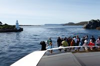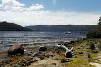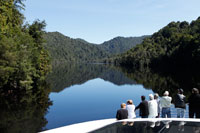 Cruising on the Gordon River. No sea-sickness worries travelling on the Captain's deck. | Many people enjoying the Gordon River cruise | |