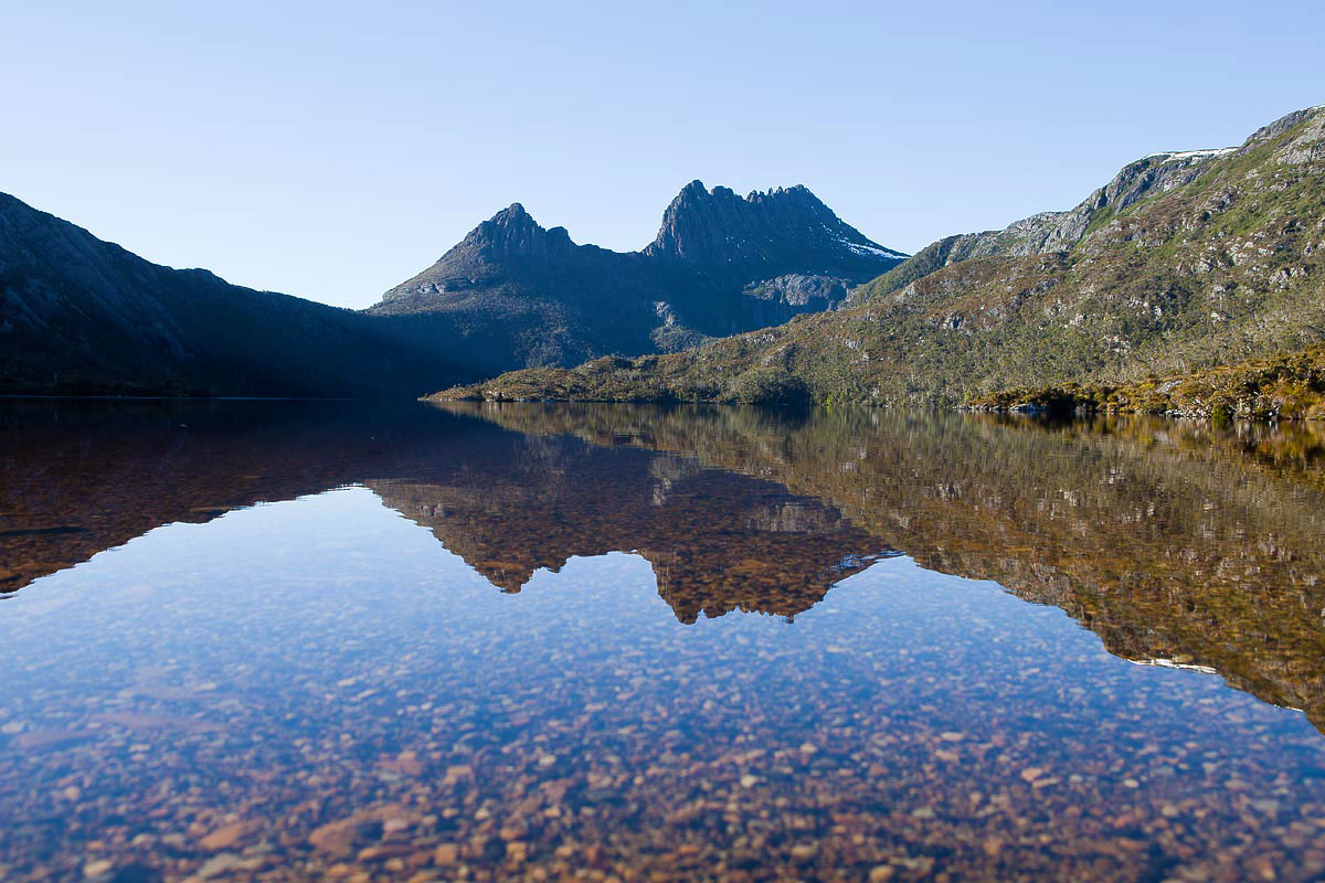 An early rise and short drive to Dove Lake was rewarded by these lovely reflections in the still waters of Dove Lake. A short time later the breeze sprung up spoiling the mirror quality