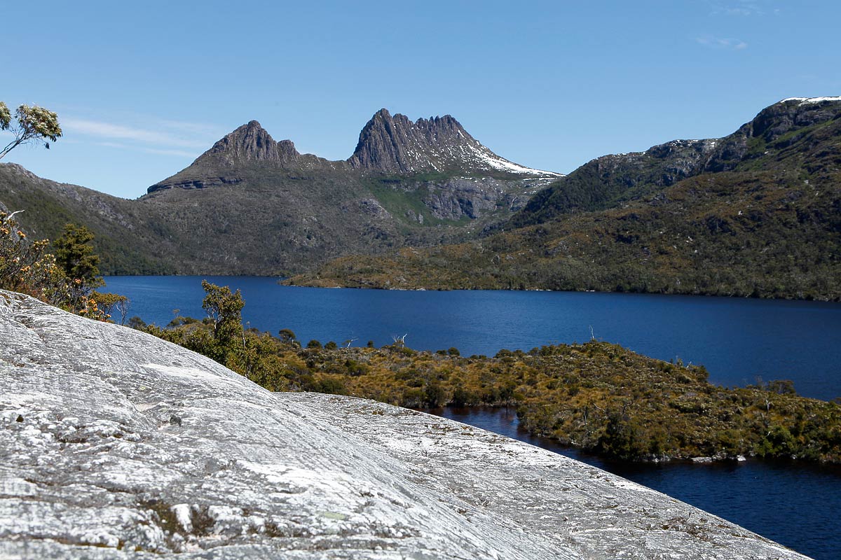 Snowy Cradle Mountain, Dove Lake and Glacier Rock showing evidence of glacial scouring during the last Ice Age