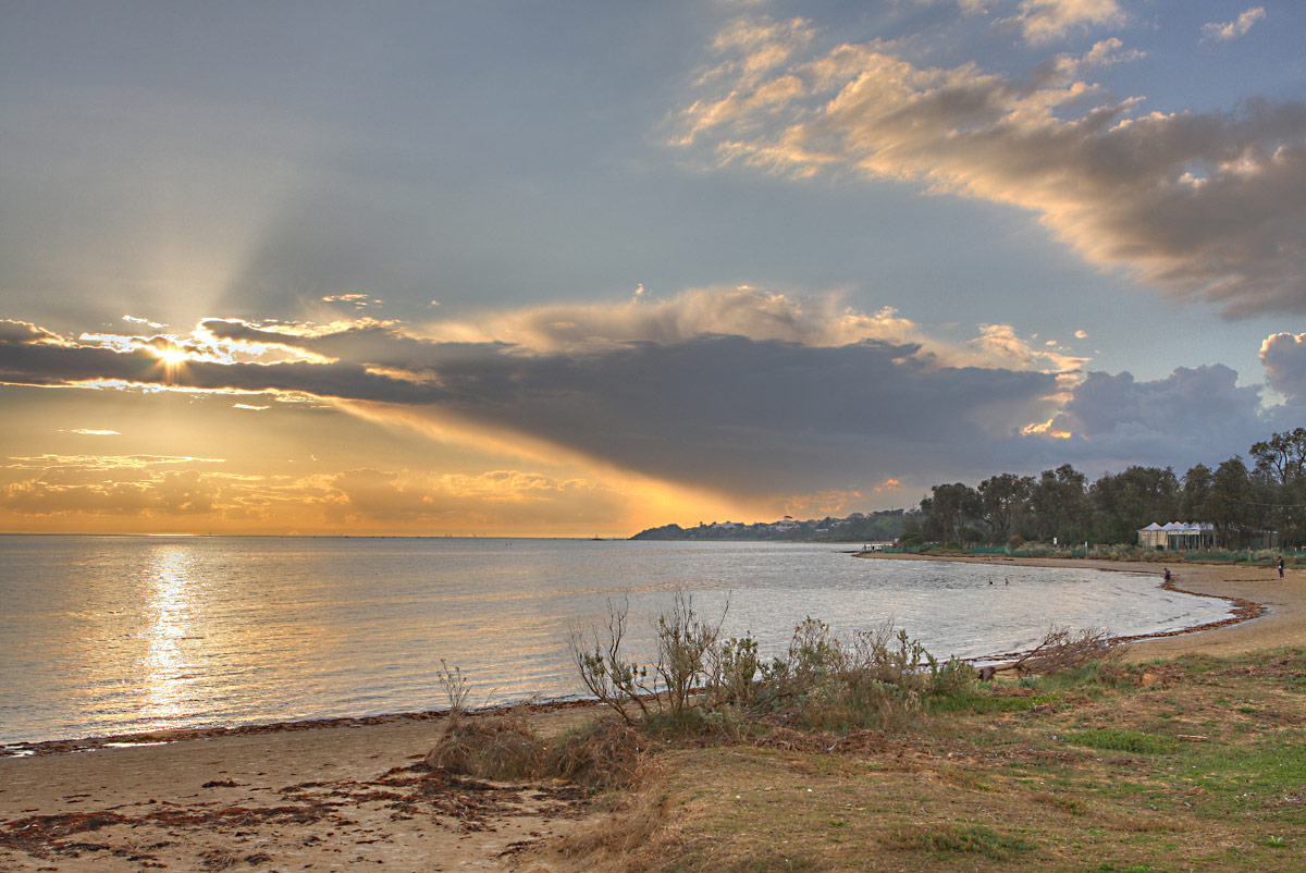 Late afternoon sun on Port Phillip Bay near Rickett's Point. |