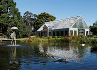 | St Kilda Botanical Gardens Conservatory and ornamental pond. | |