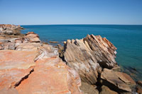 | Dinosaur footprint, Gantheaume Point, Broome | Featherstar in a rock pool at Gantheaume Point | Fossilised beach, Gantheaume Point, Broome | Sedimentary rock strata | Ocean liner mirage | Pearl Display, Broome (another) |