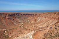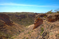 | Vlamingh Head Lighthouse and anchor memorial (view to SW) | Charles Knife canyon looking towards its exit to the Exmouth Gulf | Charles Knife canyon further inland | Pebble Beach - many of the pebbles have holes in them. My favourite. |