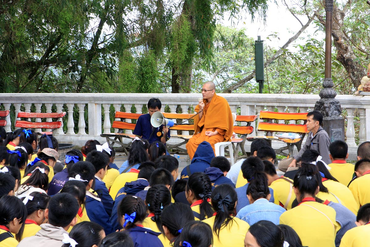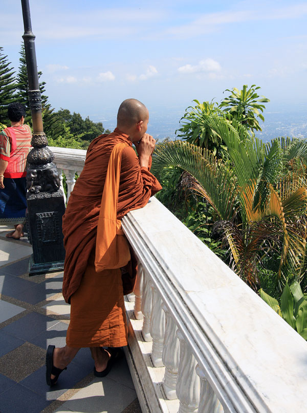 | Several hundred school children listening to a Monk's address at Wat Phrathat Doi Suthep. Here's the monk in a meditative mood a few minutes before giving the address. | |
