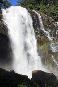 | Doi Inthanon National Park contains several spectacular waterfalls. This one is Wachirathan Falls which had a tremendous flow of water over the drop. Here's Mae Klang waterfall. |