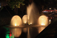 | Moat fountains lit up at night provide interest for nightowls. | |