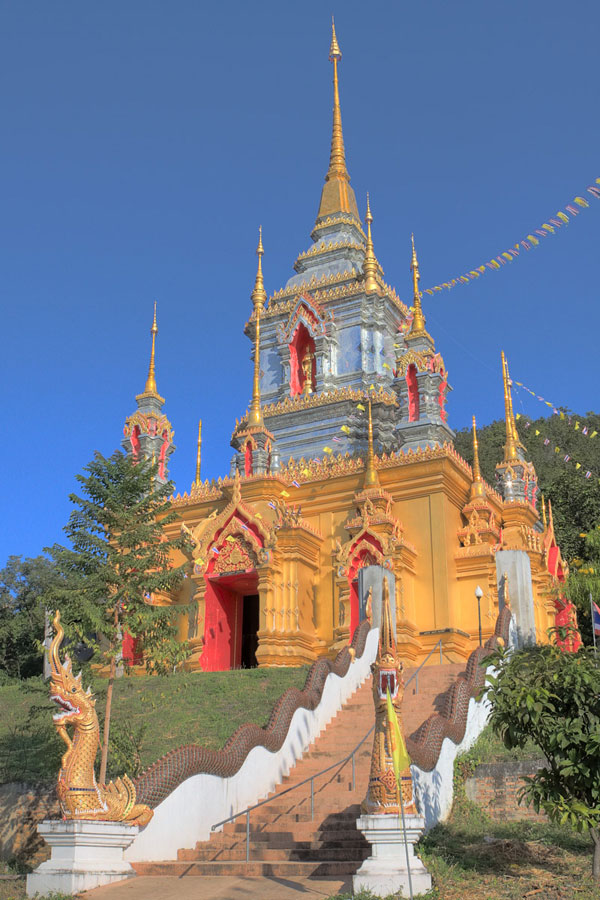 At the base of Doi Inthanon lies the majestic Wat Phrathat Sri Chom Thong absolutely stunning in its gold and silver reflective colours. |
