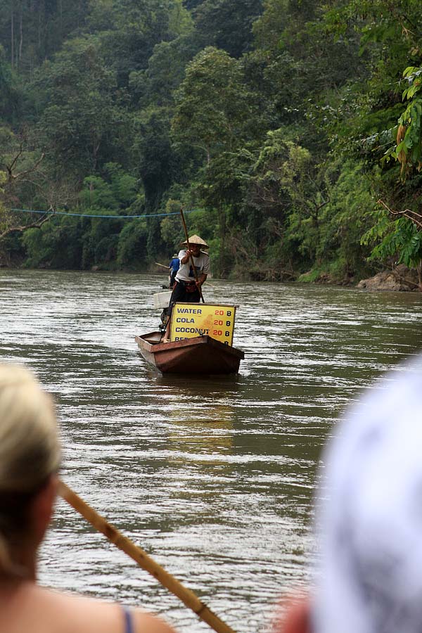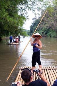 | Rafting down the river. This is not our guide but one of our group having a go. Drinks are available on the river. Entrepreneurial spirit lives on! | |