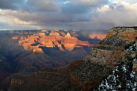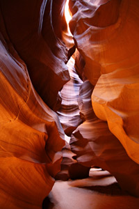 Arizona Lots of spectacular desert scenery, yet the most amazing features have been carved out of the soft rocks by countless millions of years of erosion by water (and begs the question: where has all of the Grand Canyon's dirt gone to?). Yet these same parts of Arizona are prone to tremendous sudden rainfall and flash flooding which has carved out features like the awesome Antelope Canyon that towers over your head. As you walk through on the dry creek bed it's sobering to consider a very different and deadly situation when flash floods are running. Here are images of the Grand Canyon, Antelope Canyon and Page, Arizona. Wiki entry for Arizona