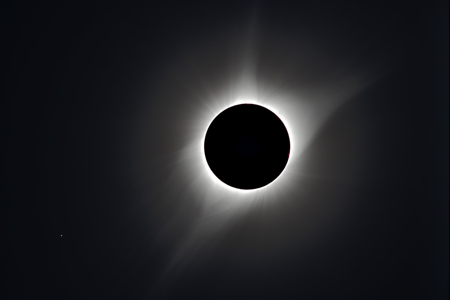 Totality on August 21 2017, Wyoming USA; the star, Regulus, is lower left