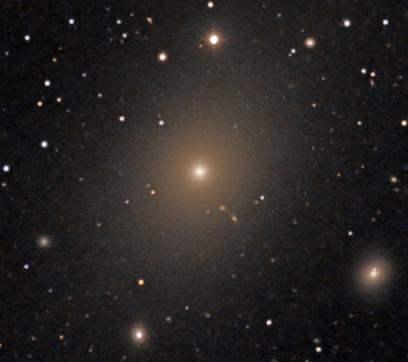 M87 Here is a closer view of this giant elliptical and dominant galaxy of the Virgo Cluster. The galaxy is an intense source of radio emission and is also known as Virgo-A. It is believed to harbour a super massive black hole having a mass of ~3.5 billion solar masses and has a famous relativistic jet of material extending about 5,000ly from the core. You can see the jet as the slightly bluish extension at 2:30 o'clock in this image. Not a bad result for a 5.1" telescope from a distance of 55 Mly!