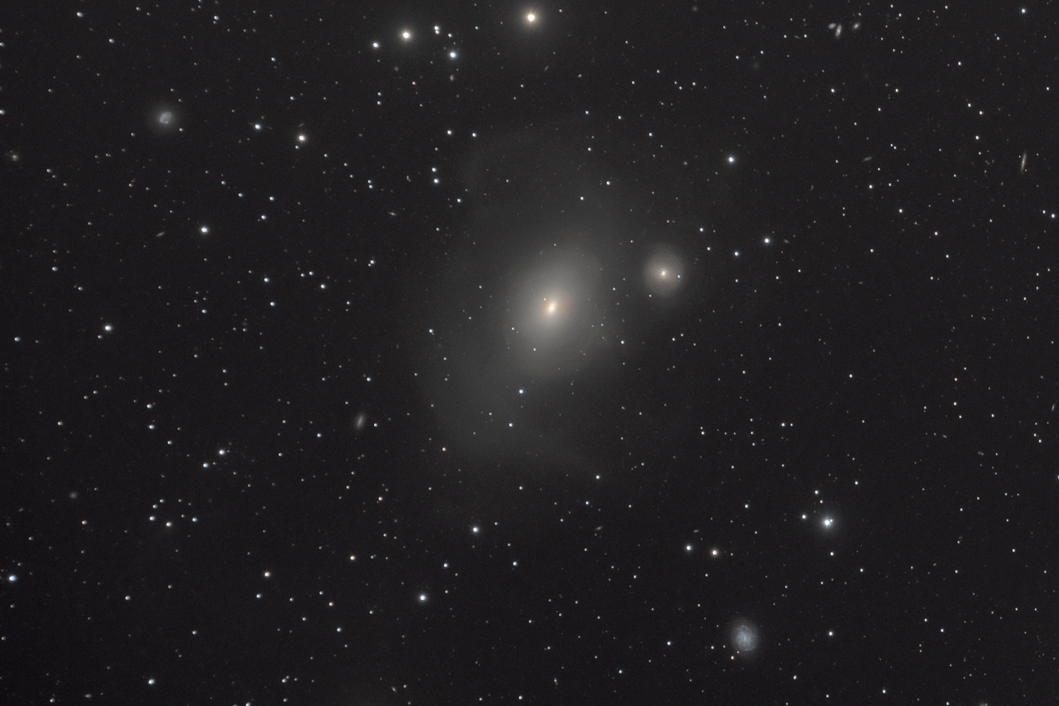 NGC 1316 Region The region around NGC 1316 (Fornax A) showing the extent of its disturbed stellar envelope and NGC 1317, presumably the source of the disturbance. Note the orange dust lanes near the core of NGC 1316. The field also contains many distant galaxies hundreds of millions of light years away.