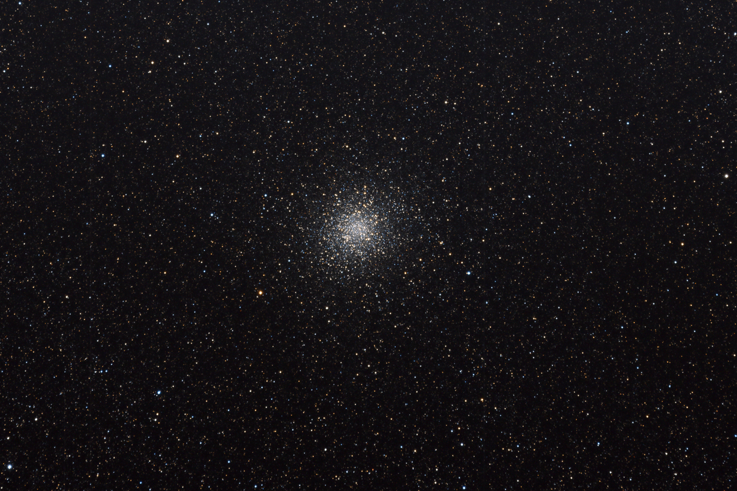 M22 Located in the direction of Sagittarius, near the galactic bulge, it is one of the closest globular clusters to the solar system at just 10,600 ly distant and approximately 100 ly across. Relatively metal-poor (ie contains few elements heavier than helium), with a mass of about 2.5x105 solar masses and one of only four globular clusters known to contain a planetary nebula. Classified, VII (intermediate loose concentration), on the Shapley-Sawyer globular cluster concentration scale (1927).
