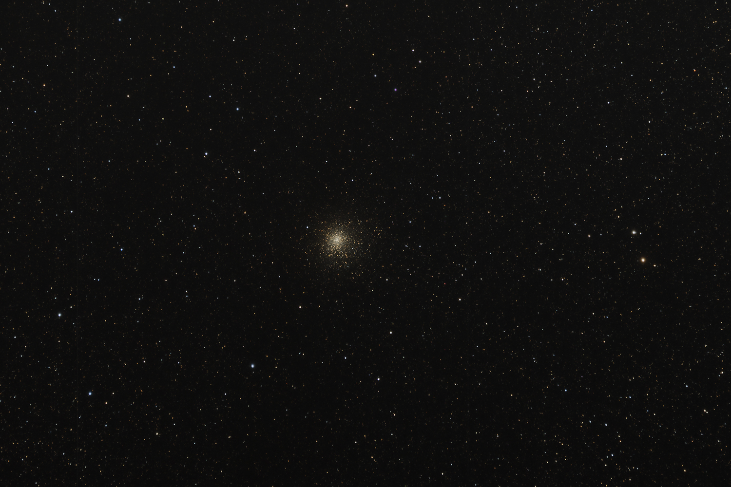 M62 Located in the direction of Ophiuchus, it is roughly 21,500 ly distant and about 100 ly across. Having a mass of about 1.2x106 solar masses, it is among the ten most massive and luminous globular clusters in our galaxy. Relatively metal-poor (ie contains few elements heavier than helium), its metals abundance is suggestive of two phases of star formation. Classified, IV (intermediate rich concentrations), on the Shapley-Sawyer globular cluster concentration scale (1927).