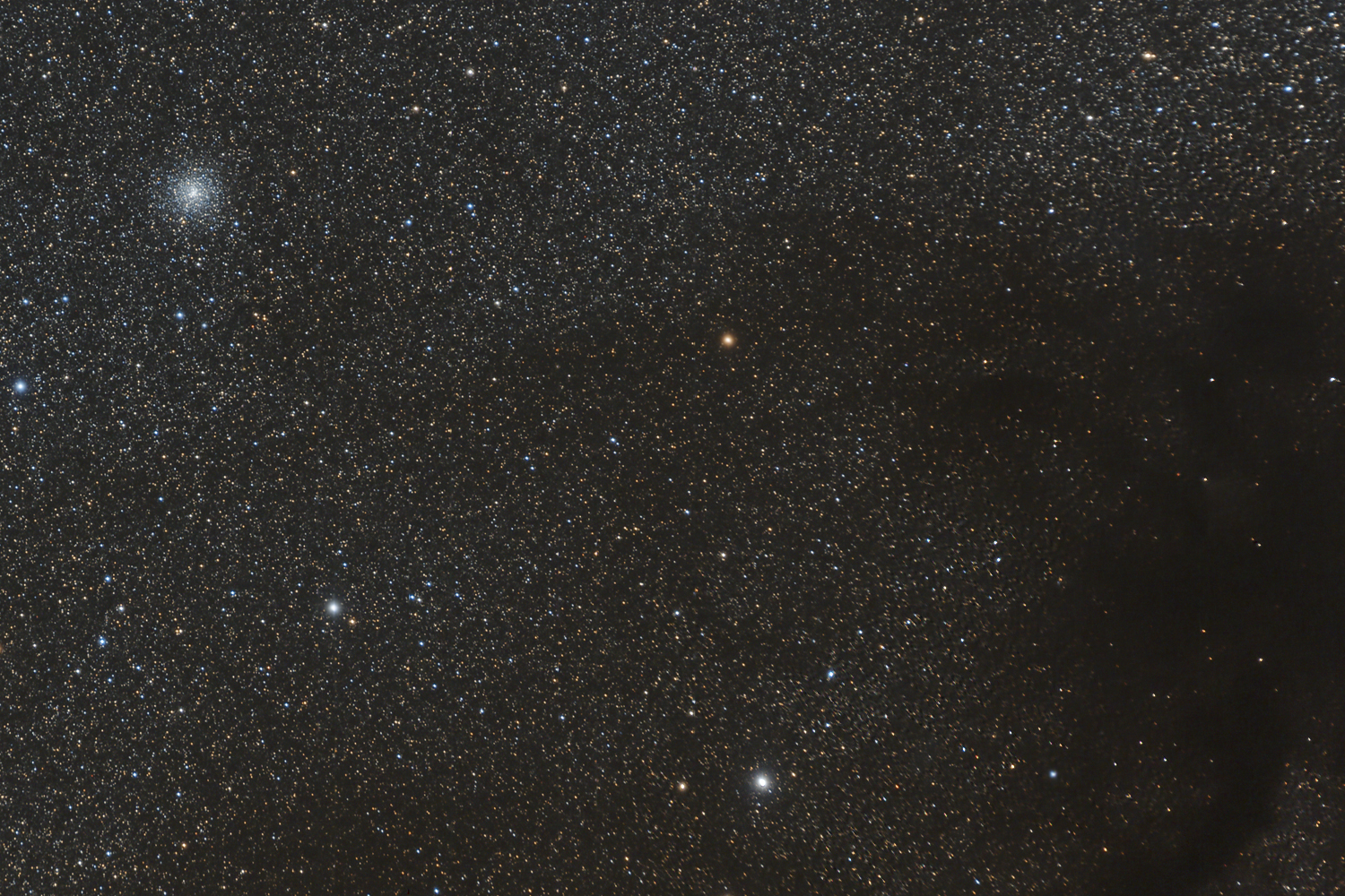 NGC 6293 Located in the direction of Ophiuchus in a rich field of stars and dense dust clouds, its distance is uncertain with estimates placing it as close as 31,000 ly, or as far as 52,000 ly from Earth. As can be seen from the image, in the sky NGC 6293 lies close to a region of obscuring dust and gas - a part of the Pipe Nebula, LDN 1773. Classified as IV (intermediate rich concentrations) on the Shapley-Sawyer globular cluster concentration scale (1927).