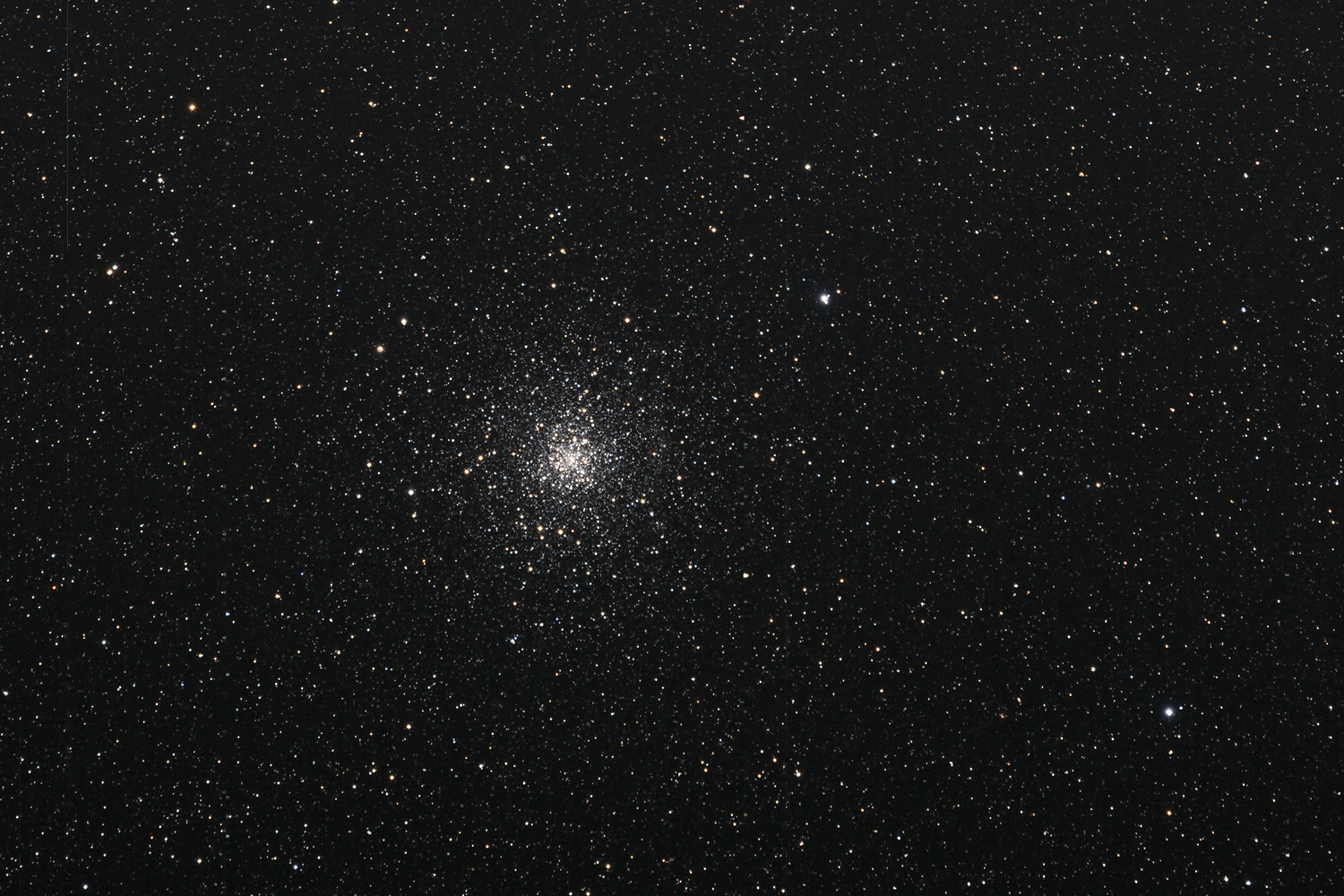 NGC 6397 Located in the direction of Ara it is one of the closest globular clusters to us (about 7,800 ly from Earth), 68 ly in diameter and has a mass of about 1.1x105 solar masses. It contains about 400,000 stars and is one of at least twenty such Milky Way objects that have experienced core collapse to a very dense concentration of compact objects. The nature of these objects - white dwarfs, neutron stars, black holes - was uncertain until recently, when observations of stellar motions around gravitating masses in the core were best explained by models that assumed the masses to be solely white dwarfs, though numbering in the hundreds. As globular clusters go, it is relatively metal-poor. Classified as IX (loose towards the centre) on the Shapley-Sawyer globular cluster concentration scale (1927).
