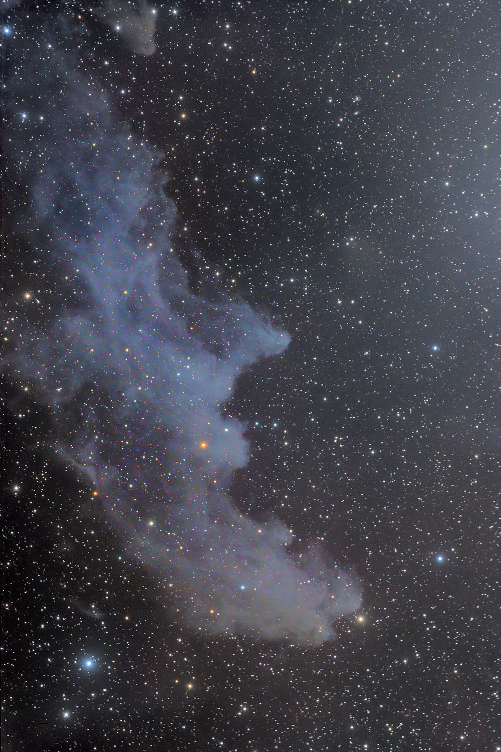 The Witch's Head Nebula, IC 2118 - an interesting mix of reflection and emission nebulosity created by the high energy radiation of Rigel just out of the frame on the upper right; distance around 800 ly