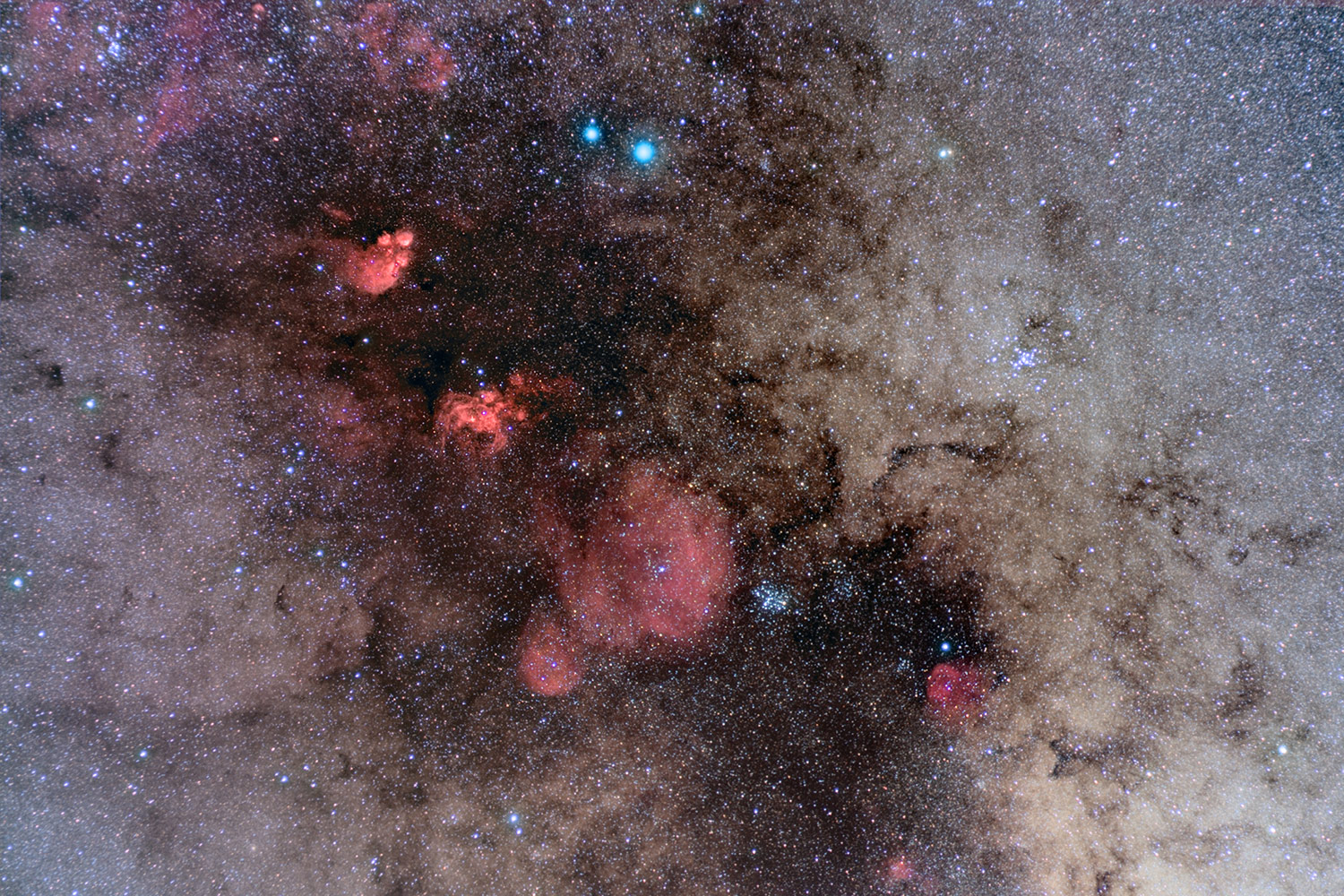 | Camera: | SBIG STL11000M, Astrodon filters | Scope: | Camera lens, f=135mm working at f4 (fov 15° x 10°) |