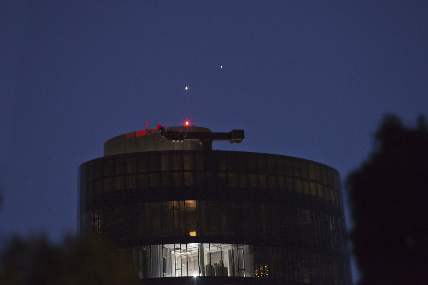 three moons of Jupiter - from l to r: Europa, Io and Callisto are lined up