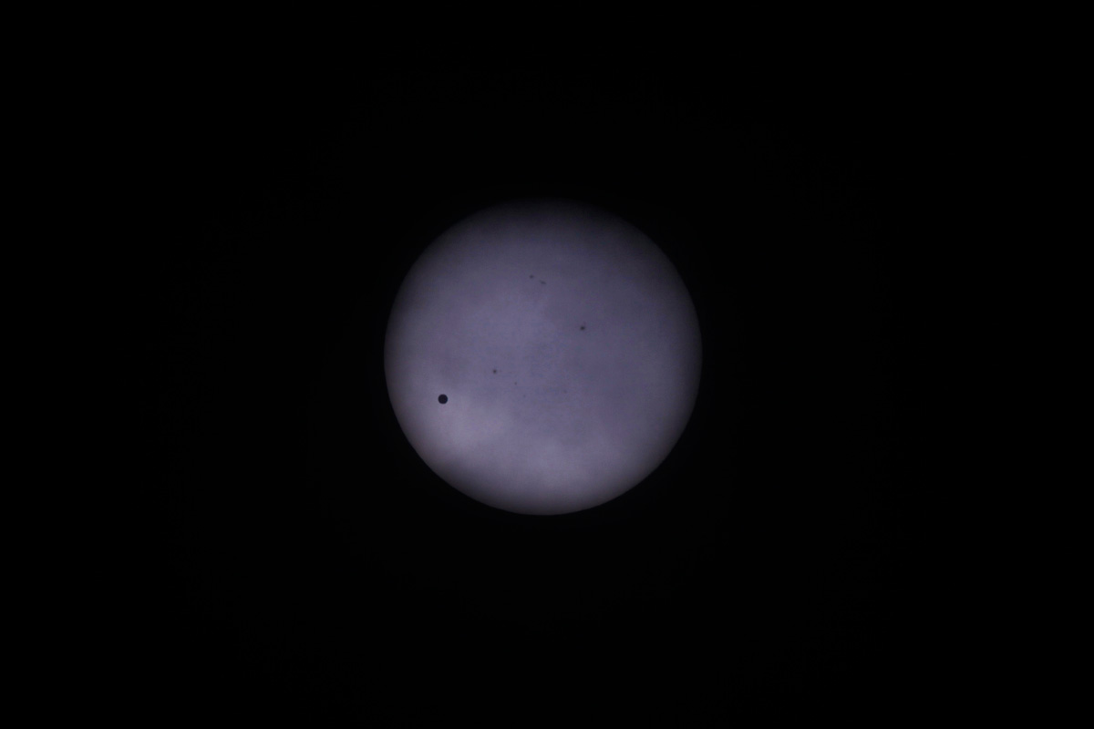 10:49am, through a fleeting patch of high cloud. Note the movement of Venus relative to the sunspots in the time between images.