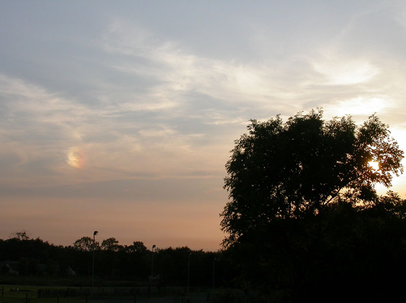 Sundog. Strong refraction of sunlight by a cloud of ice crystals. |